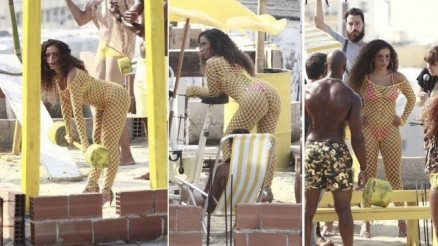 Anitta usa fio dental e pega peso em gravação de clipe