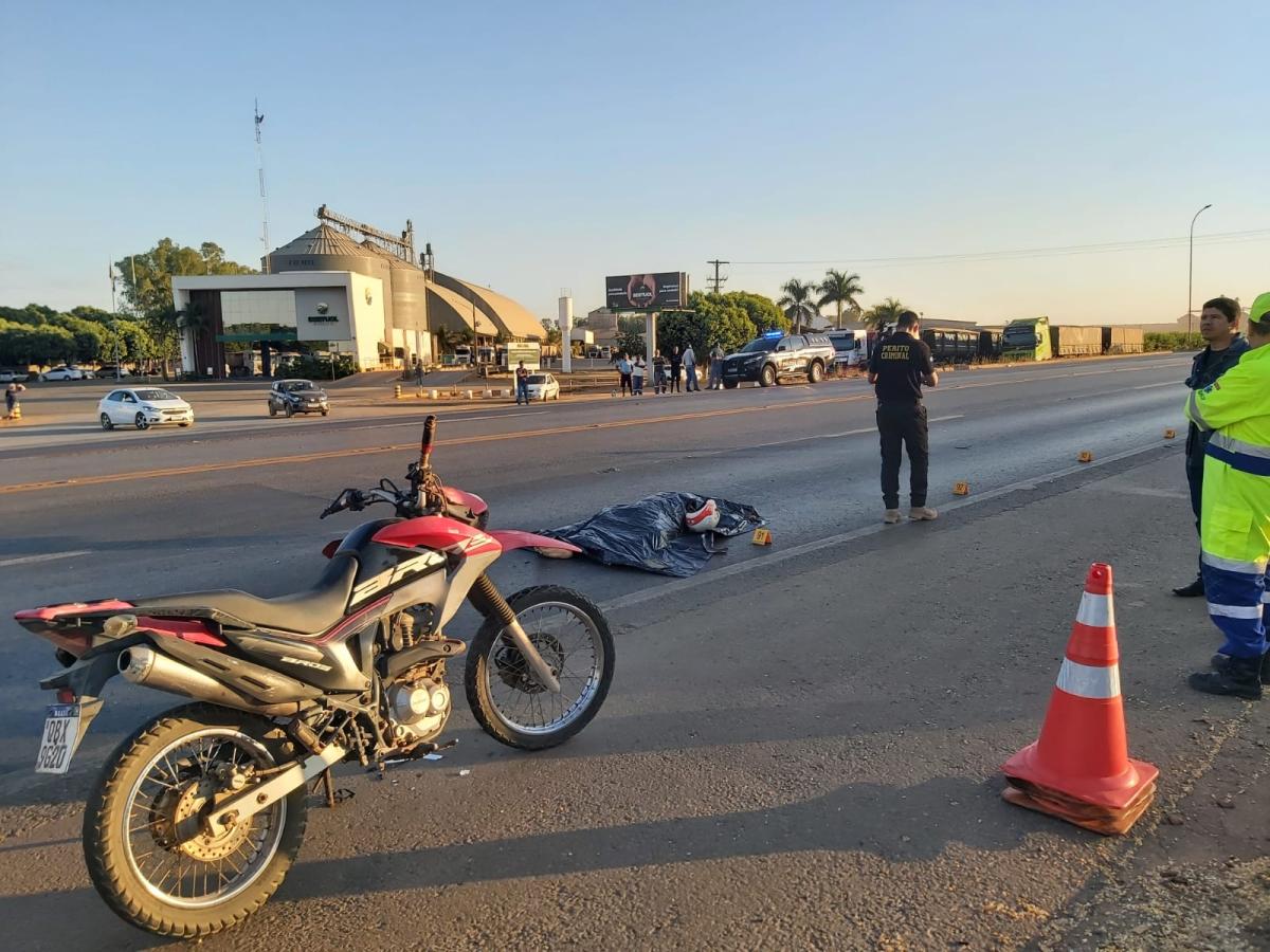 Um motociclista, ainda não identificado, morreu após ser atropelado por uma carreta na madrugada desta terça-feira (2), na BR-163, em Sorriso (420 km ao norte de Cuiabá). Rodovia foi bloqueado para trabalho dos órgãos competentes.