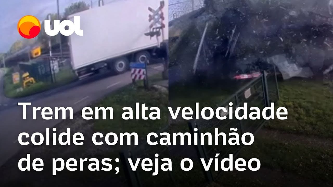 Veja Vídeo – Trem bate em caminhão de peras, destrói veículo e espalha frutas; veja acidente